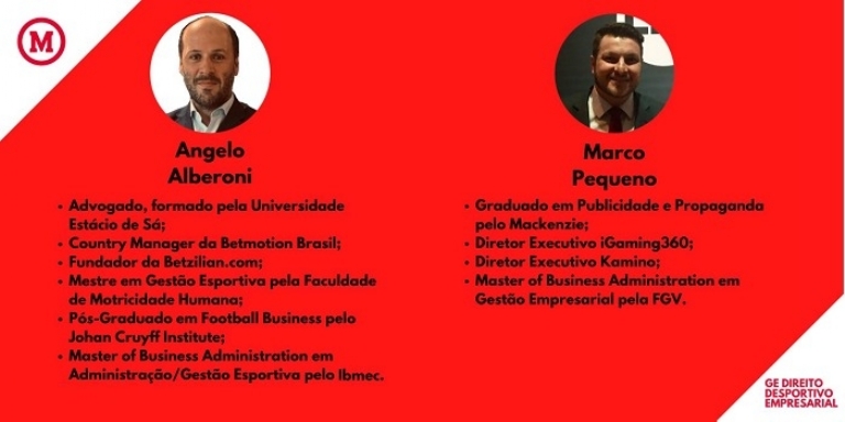 No encontro deste sábado, participarão Angelo Alberoni, Country Manager da Betmotion Brasil, Marco Pequeno, Diretor Executivo da iGaming360, que debaterão com Udo Seckelmann, advogado e especialista em apostas esportivas no escritório Bichara e Motta Advogados.
