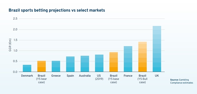 “Olhando para o futuro, o Brasil é um mercado com um potencial considerável, e os sinais são encorajadores de que um regime de licenciamento que permita apostas esportivas com probabilidades fixas está próximo. No final de 2018, o país promulgou uma lei legalizando as apostas esportivas com odds fixas nos ambientes terrestres e online. Embora os detalhes principais de uma estrutura regulatória ainda estejam a ser estabelecidas, medidas concretas foram tomadas, com o Ministério da Economia do Brasil abrindo consultas e publicando rascunhos de planos sobre as perspectivas de licenciamento", afirma o relatório da empresa.