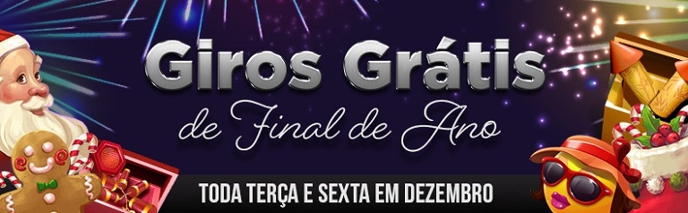 A Promoção Giros Grátis de Final de Ano é a chance de o cliente ganhar giros grátis de alto valor todas as terças e sextas-feiras em dezembro.