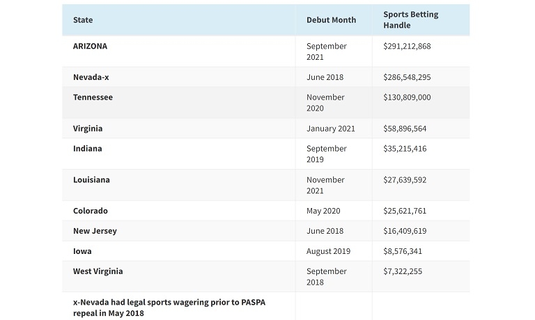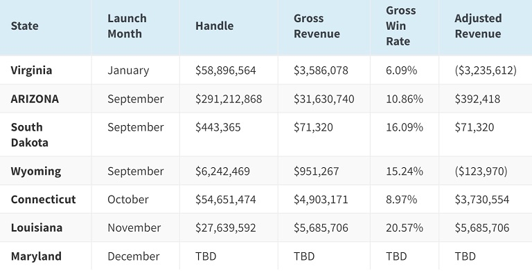 O Arizona também venceu Nevada na posição mais alta de qualquer estado no primeiro mês de operações na era pós-PASPA, que começou em junho de 2018. Enquanto o Estado de Prata há muito conduzia apostas esportivas legais antes de a Suprema Corte dos EUA derrubar o PASPA, gerou US$ 286,5 milhões no mês em que outros estados também puderam começar a aceitar apostas. Maryland começou a aceitar suas primeiras apostas em dezembro.