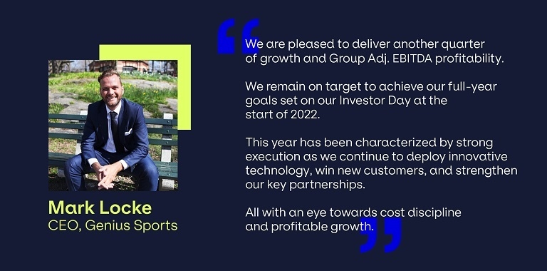“Estamos satisfeitos por entregar mais um trimestre de crescimento e EBITDA ajustado lucrativo e continuamos na meta de atingir nossos objetivos anuais estabelecidos em nosso Dia do Investidor no início de 2022”, disse Mark Locke, cofundador e CEO da Genius Sports.