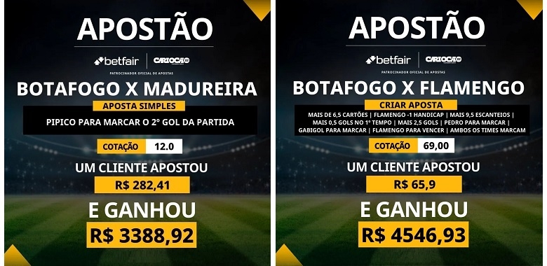 Detentora do naming rights do torneio cujo vencedor levantará a Taça Guanabara, a Betfair apresentou em suas redes sociais alguns resultados de apostas ganhadoras para destacar o engajamento obtido com as ações voltadas a um dos mais importantes torneios regionais do Brasil.