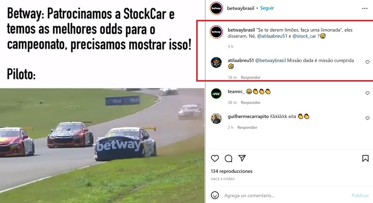 A conta da Betway Brasil fez um post engraçado com o vídeo no Instagram que registrou milhares de visualizações e foi compartilhado centenas de vezes. Até a Stock Car oficial postou em seus stories e o próprio piloto Átila Abreu teve um diálogo bem-humorado com o CM da casa de apostas.