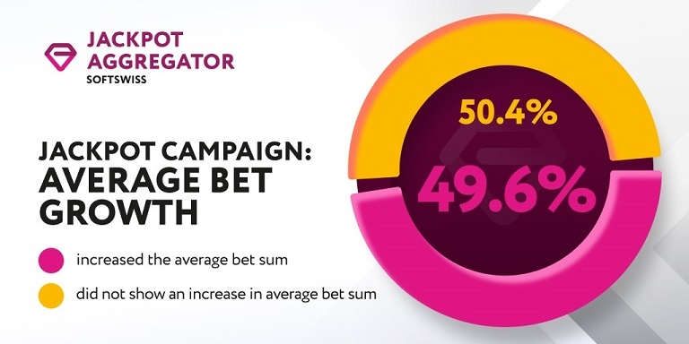 Os resultados mais impressionantes são os seguintes: quase 50% dos jogadores aumentaram sua soma média de apostas depois de ingressar na campanha do jackpot. Quase metade desses usuários demonstra um crescimento de 75% da soma média das apostas.