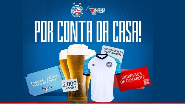 A ativação funcionará da seguinte forma: urnas com vouchers serão espalhadas pelas entradas da arena. Assim, conforme forem entrando, os torcedores vão retirando seus vouchers e conhecendo seus prêmios. Além das 2 mil cervejas, também estarão em jogo créditos em dinheiro para apostas no site da Casa, ingressos para o próximo jogo do Bahia, acesso ao camarote da Casa de Apostas e vale-compras de R$ 100 na Loja Esquadrão.