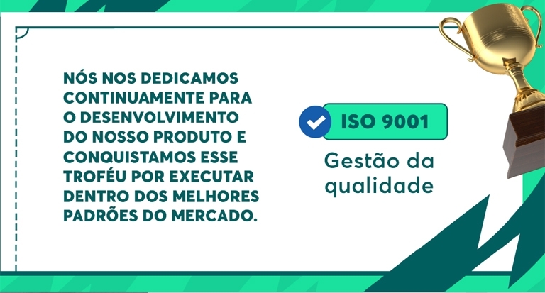 ISO 9.001: Certificação de gestão da qualidade. Garante que todos os processos internos para viabilizar o produto para o cliente são executados dentro dos melhores padrões do mercado, de forma a manter bons resultados de satisfação do nosso usuário final.