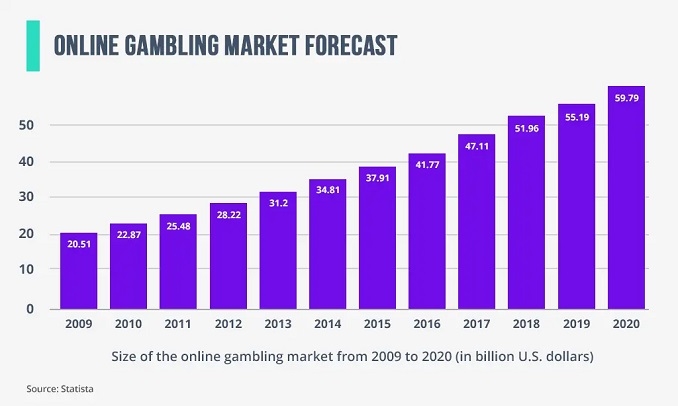 Antes de entender o porquê da alta recente, é preciso observar que o mercado gambling (“jogos de azar”, em tradução livre) já vem crescendo há algum tempo. Desde 2009, o segmento tem apresentado avanços ano após ano pelo mundo, o que revela um interesse massivo dos jogadores.