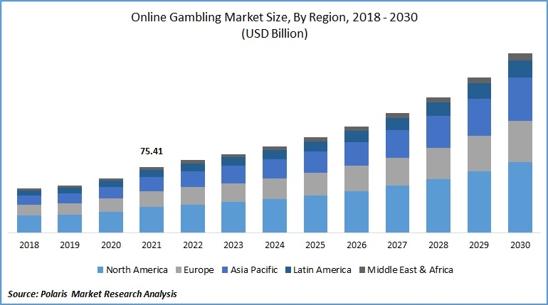 De 2020 para 2021, o crescimento em valor de mercado foi de 26%. Mas segundo a Polaris Market Research Analysis, a previsão é de que o gambling market continue crescendo nos próximos oito anos, com expectativa de alcançar uma receita de US$ 205,60 bilhões em 2030.