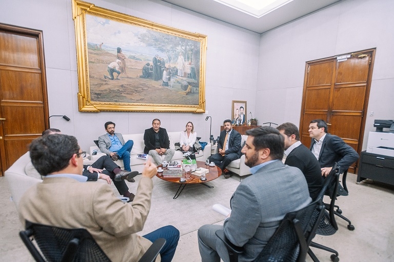 O prefeito de São Paulo, Ricardo Nunes, juntamente com os secretários municipais da Fazenda (Guilherme Bueno de Camargo), da Casa Civil (Fabrício Cobra) e seu chefe de gabinete (Diogo Soares), bem como do diretor de investimentos da SP Negócios (Michel Cerqueira) e o vereador Fabio Riva, receberam na tarde desta terça-feira, 27, o diretor do Grupo Entain, Marcus Silva, acompanhado dos advogados da empresa no Brasil, Luiz Felipe Maia e Fernanda Batistella.
