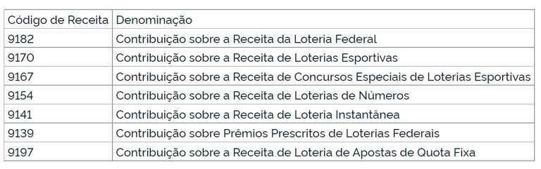 A surpresa foi a inclusão do código 9197, destinado à contribuição sobre a receita de loteria de apostas de quota fixa, o que dá a entender que o Ministério da Economia já está abrindo as portas para a breve regulamentação das apostas esportivas.