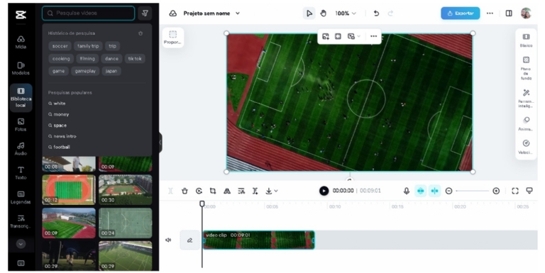 * Para trabalhar com edição de vídeo, você pode recortar, redimensionar, adicionar legendas automaticamente e até mesmo fazer edições em várias faixas;