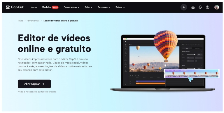 * Entre as funções para edição de fotos, o CapCut Online permite que você redimensione, recorte e remova o fundo de fotos, faça correspondências de cores e mais;