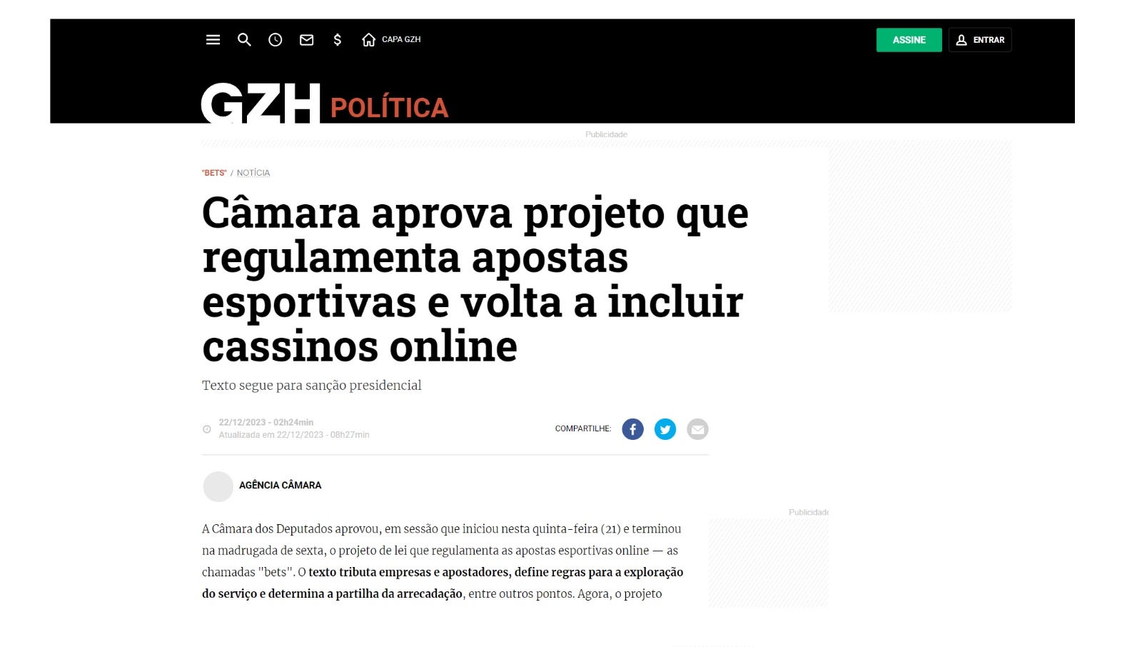 A Gazeta Zero Hora apontou que a aprovação aconteceu na madrugada desta sexta e que o projeto vai à sanção presidencial.