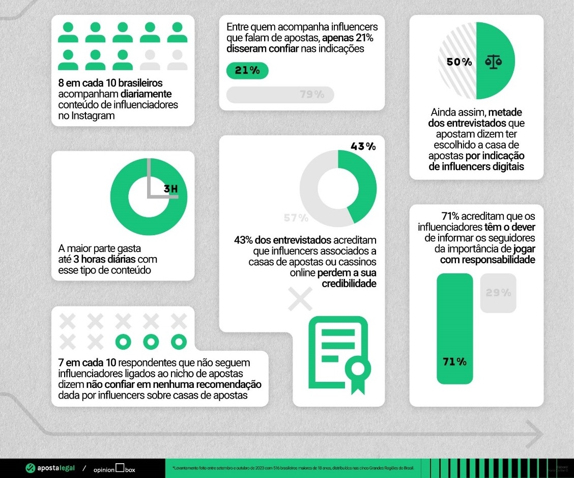 Os dados apurados mostram uma percepção de insegurança do consumidor brasileiro em relação a indicações feitas por influenciadores digitais em relação ao mercado de apostas.