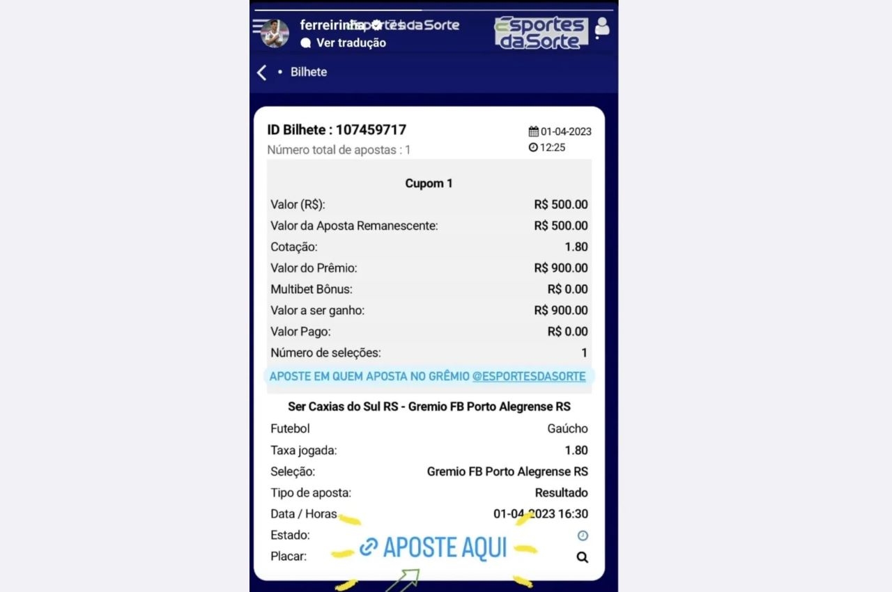 Após o estardalhaço com a publicação de Ferreirinha de um comprovante de aposta na vitória do Grêmio, a empresa Esportes da Sorte e o agente do atleta se pronunciaram. Vale destacar que, lesionado, o jogador não participou do jogo.