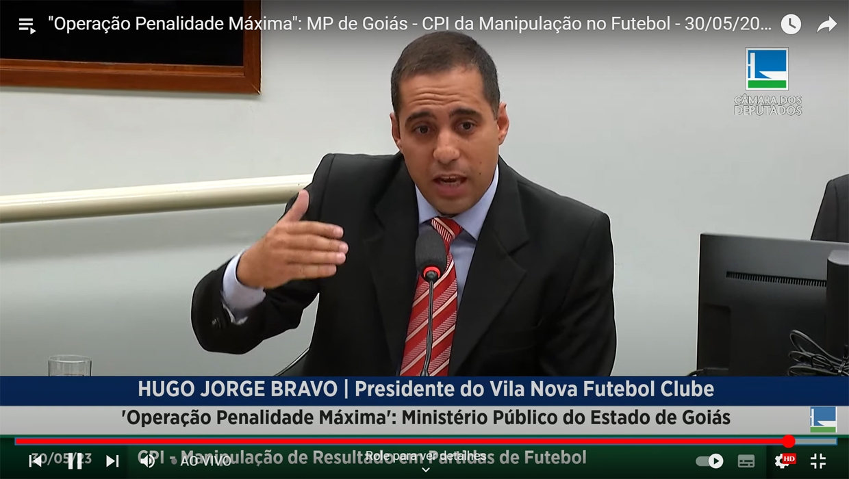 Após a abertura dos trabalhos, o deputado Júlio Arcoverde (PP-PI), passou a palavra ao presidente do Vila Nova, Hugo Jorge Bravo, que afirmou ter sido “uma obrigação” denunciar os fatos que chegaram a ele. “Essa operação vem em um momento importante para o futebol brasileiro e se isso não acontecesse agora, em 3 ou 4 anos ele estaria completamente contaminado”.