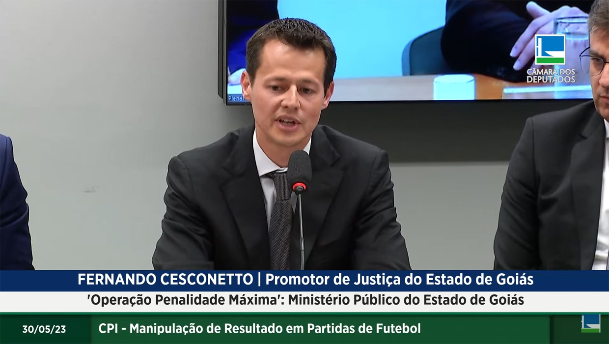 Em seguida, Fernando Cesconetto, promotor de justiça do Estado de Goiás, fez um retrospecto sobre como as denúncias chegaram a ele e a importância das informações prestadas pelo presidente do Vila Nova, “que nos permitiu identificar os núcleos de financiadores, apostadores e intermediadores, além do núcleo de apoio administrativo. Cada um tem sua função”, explicou, deixando claro o aspecto de formação de quadrilha. “Eles agregaram mecanismos para tentar burlar os algoritmos para não chamar a atenção das casas de apostas”.