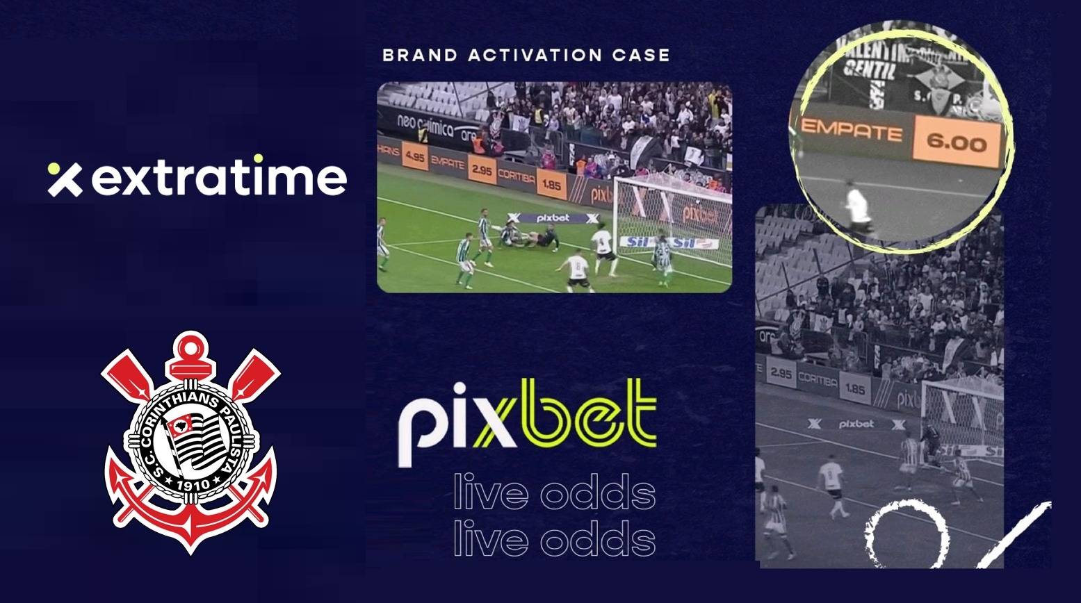 Após o time paranaense abrir o placar, a tecnologia da Extratime atualizou a publicidade da Pixbet: 4.35 odds por vitória do Corinthians, 1.85 pelo Coritiba e 2.95 pelo empate.