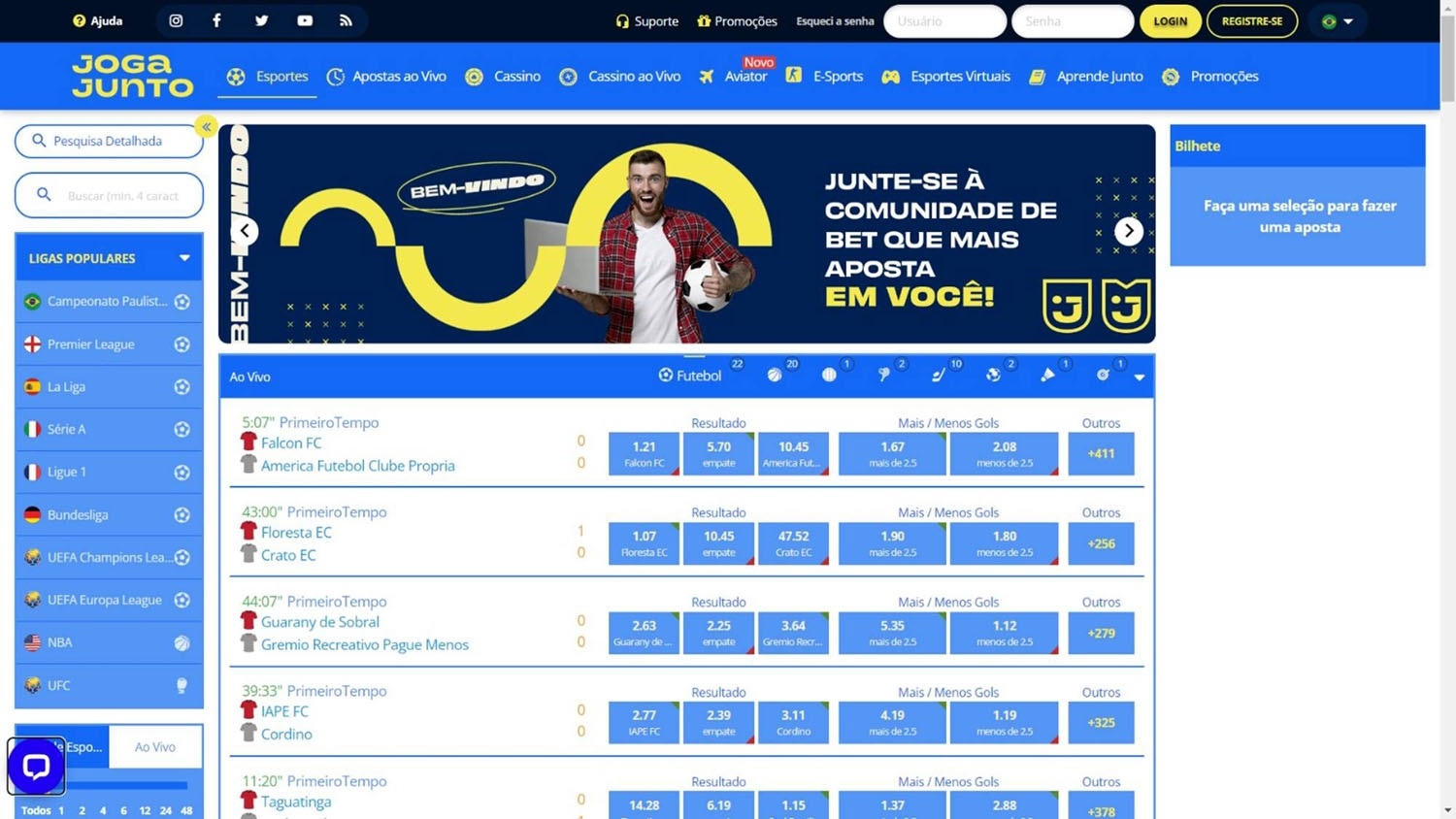 Além de apostar em suas ligas de futebol preferidas, na NBA, na Fórmu hjla 1 e no eSports, o jogador do Joga Junto conta com cassino on-line e jogos virtuais que são os grandes sucessos do momento, como o Aviator.