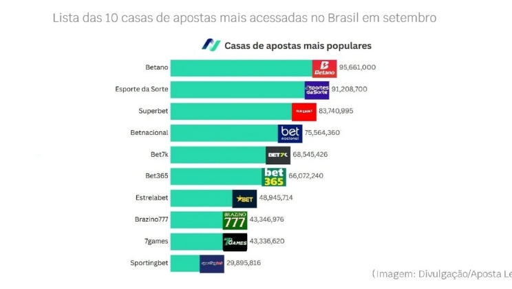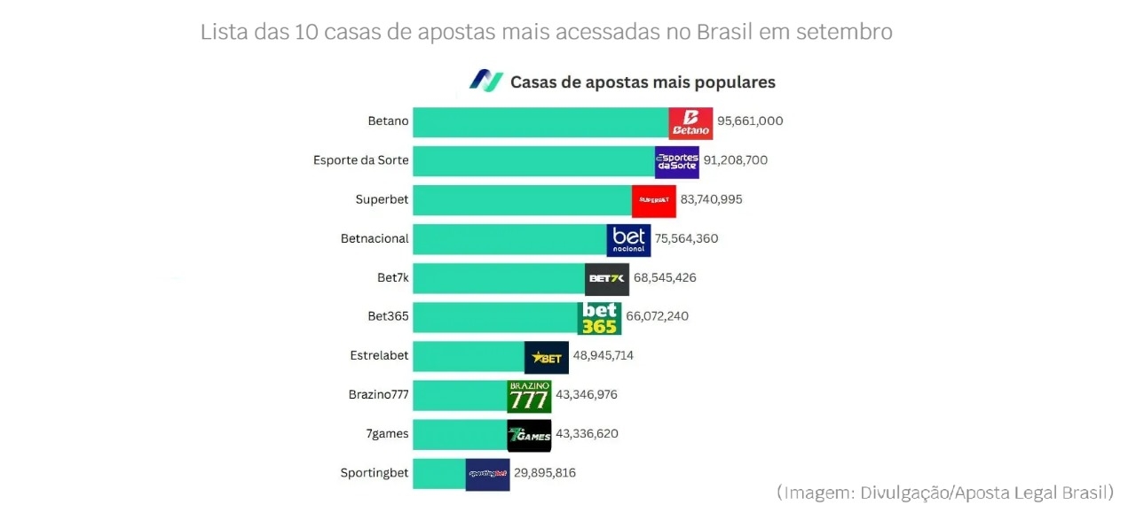 Na lista das dez bets mais acessadas do Brasil, feita pela Aposta Legal Brasil, apenas três não patrocinam clubes ou competições no Brasil, a bet365, a Brazino777 e a 7Games.
