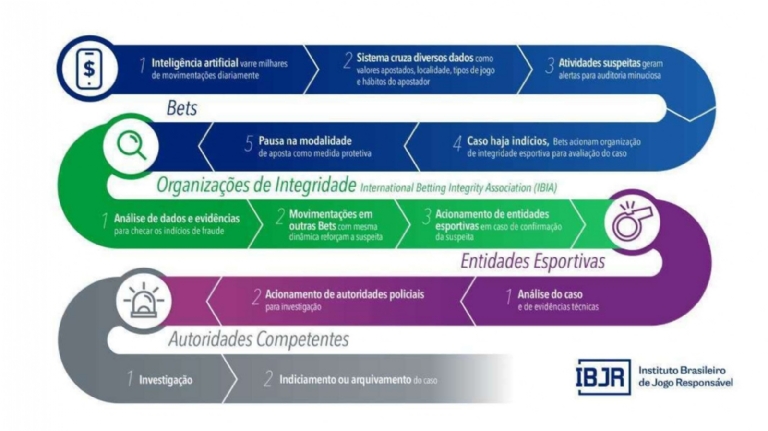 Nestes casos, o procedimento é de alerta para aprofundamento das investigações e acionamento das autoridades e entidades esportivas. “Instituições dedicadas à supervisão em prol da integridade esportiva são fundamentais neste processo. Por isso, as associadas ao IBJR são membros da International Betting Integrity Association (IBIA), principal entidade global que atua pela integridade das apostas e proteção da integridade esportiva”, explica Gelfi.