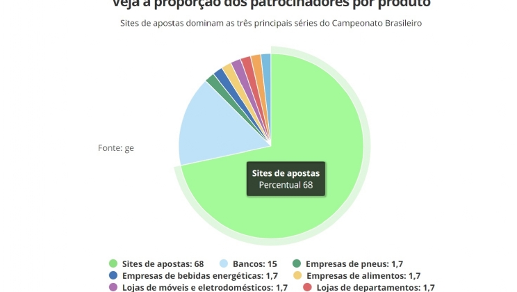 Além de sites de apostas e bancos, a lista dos principais patrocinadores dos 60 clubes das séries A, B e C do Brasileirão contam com empresas de pneus, bebidas energéticas, alimentos, lojas de imóveis, eletrodomésticos e departamentos, empresa de crédito e agência de música.