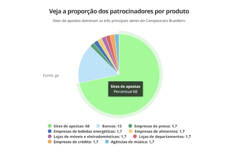 Dos 60 clubes que vão jogar as séries A, B e C de 2024, 39 possuem sites de apostas como patrocinadores masters. O número é expressivo, isso porque o segundo colocado na lista, os bancos, representam apenas 15%.