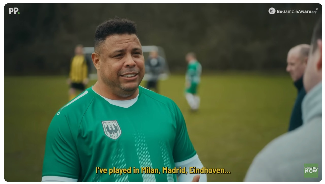 A Paddy Power realizou uma ação de marketing envolvendo o ex-craque do Corinthians e da Seleção Brasileira Ronaldo Fenômeno, que entrou em campo para substituir outro jogador quando o Phoenix FC perdia por 4 x 0.