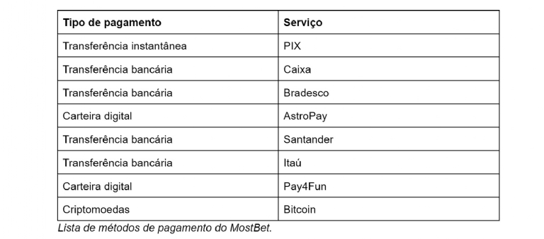Nota: No MostBet Casino, você também pode pagar por boleto.