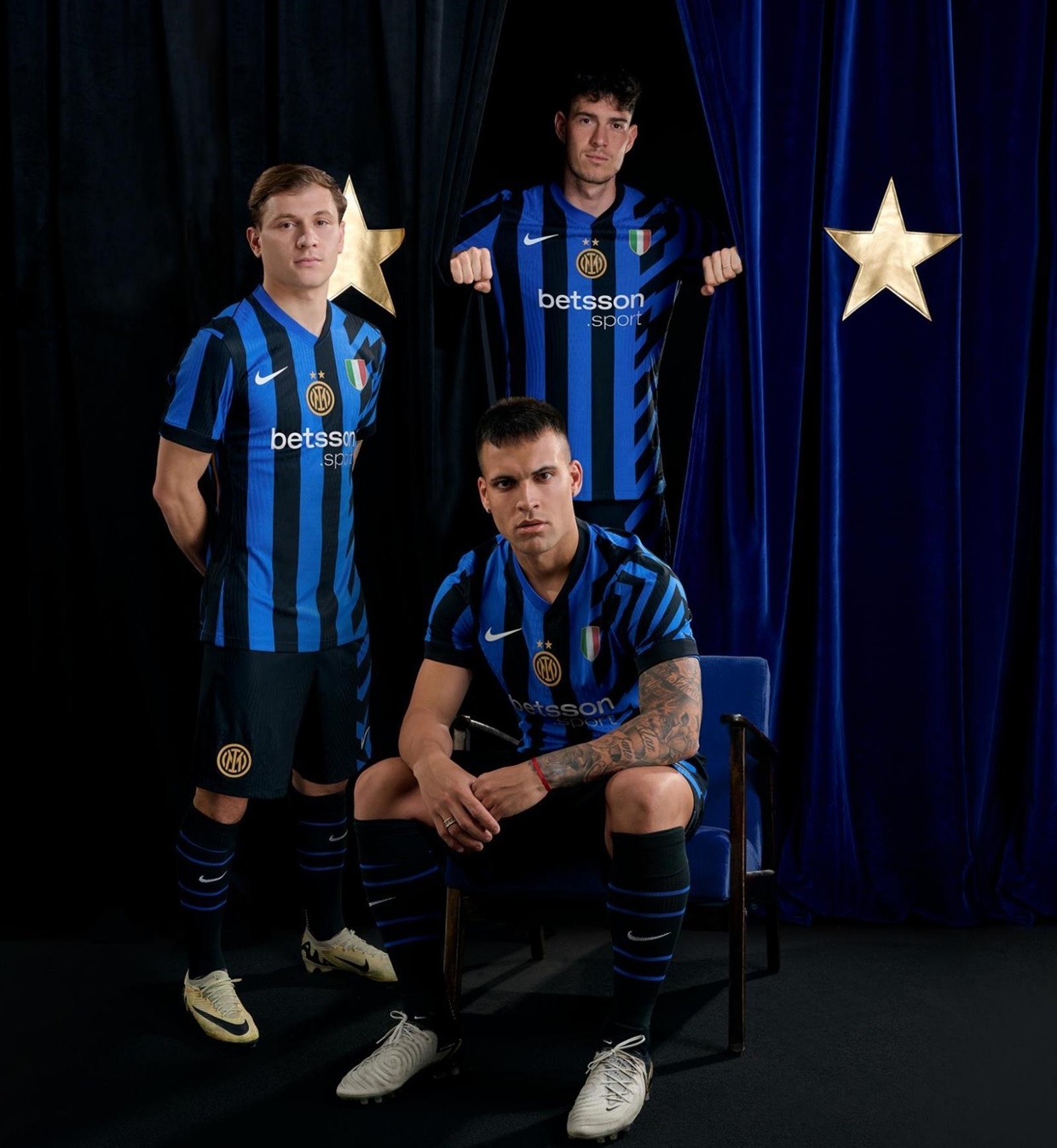 As cores da bandeira italiana fazem seu retorno à camisa da Nike, projetada para se tornar icônica, agora adornada com a histórica segunda estrela, representando os 20 títulos da equipe. O logo da Inter ocupa o centro, ladeado à esquerda pelo tricolor. Além disso, a frente da camisa marca a estreia da Betsson Sport como a nova patrocinadora oficial.