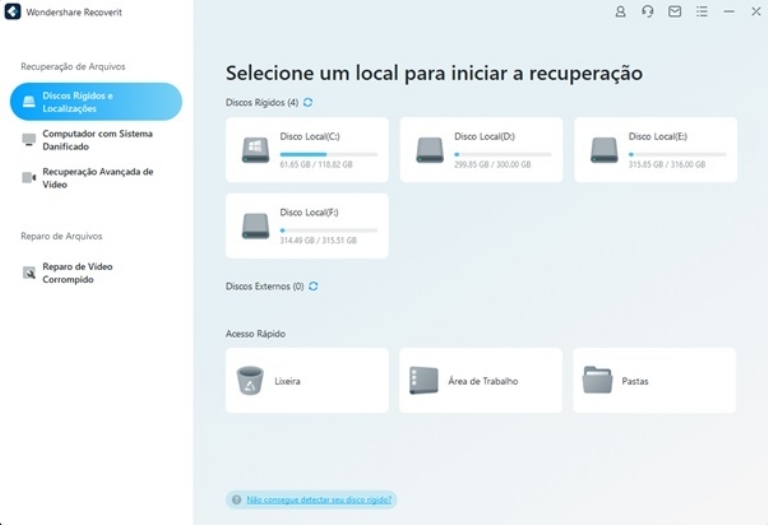 Aqui entra o Wondershare Recoverit, um programa para recuperar arquivos que se destaca como uma ferramenta eficiente por lidar com todos os cenários de perda de dados. Isso vale desde exclusão acidental até falha do sistema e ataque de vírus. Assim, oferece uma solução completa para a recuperação de dados.