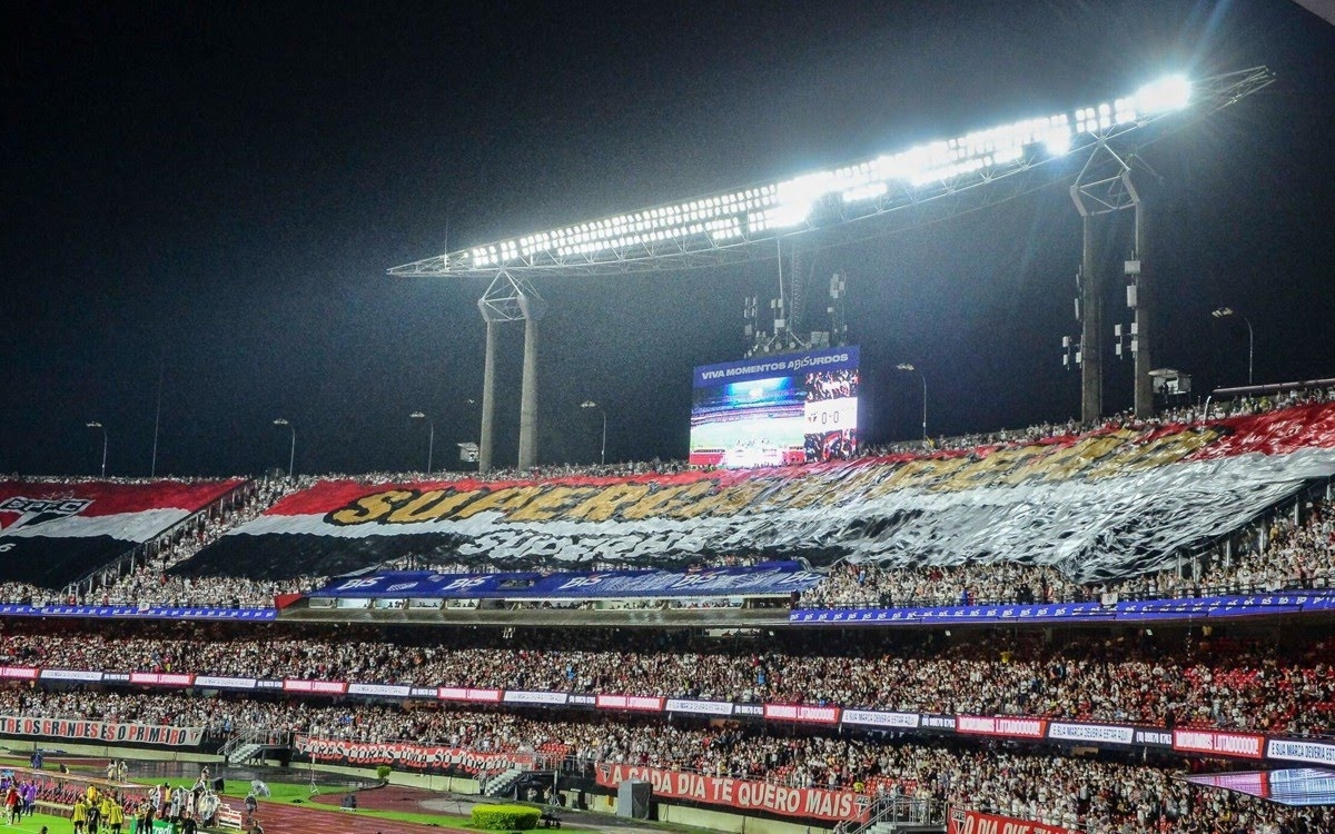 A peça, de 22 mil metros quadrados, apresentou a mensagem "95 anos de vitórias" e destacou ainda os anos mais importantes da história do São Paulo. O bandeirão ocupou todo o anel superior da arquibancada do Morumbis.