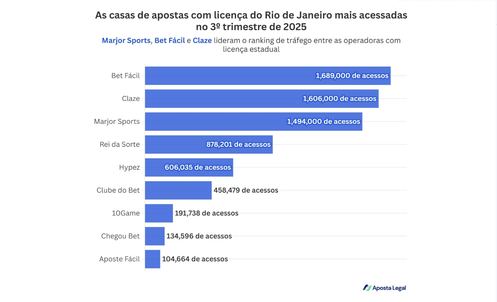 Um exemplo são Bet Fácil e MajorSports, bets com licença do Estado do Rio de Janeiro mais acessadas, que registraram cerca de 15 milhões de visitas no último trimestre.