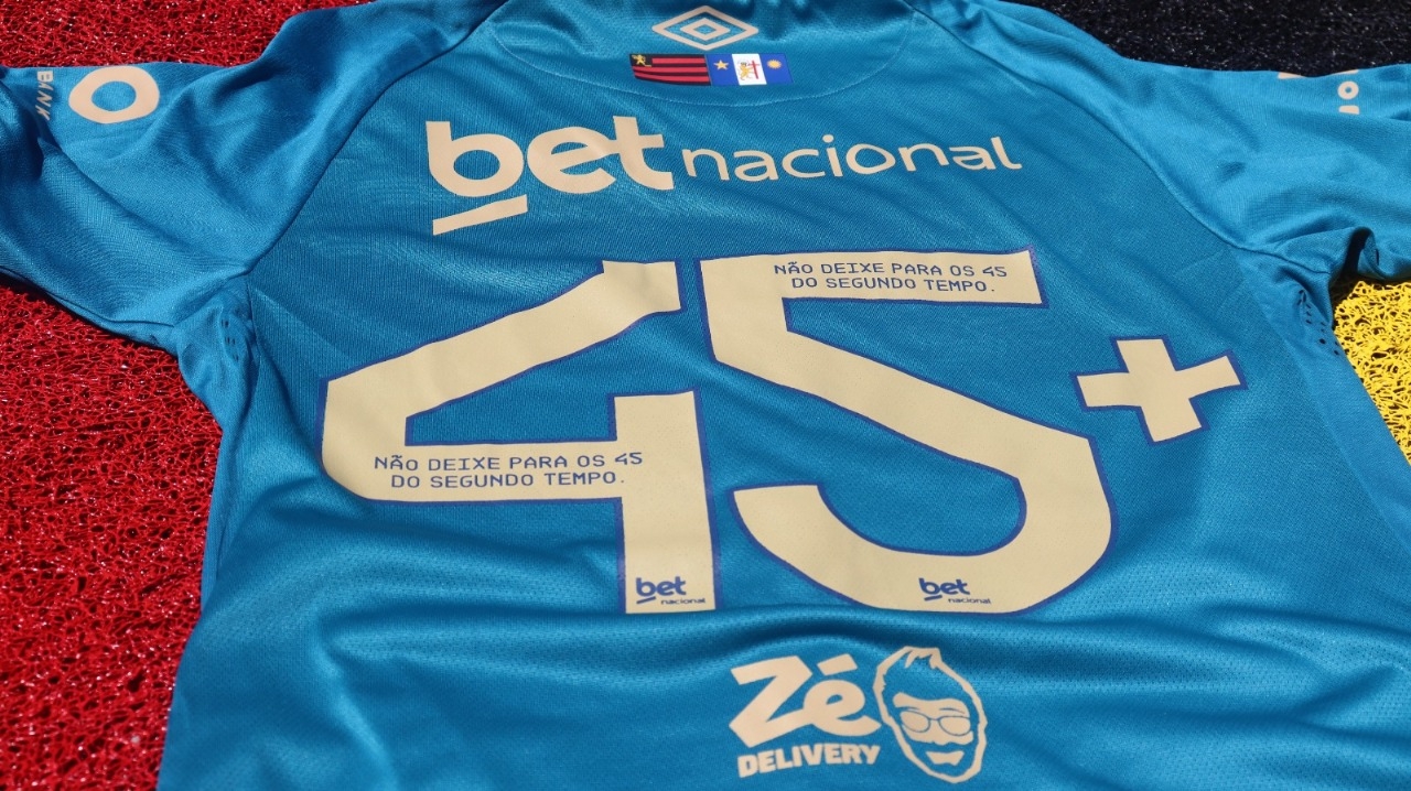 Dez peças serão usadas pelos titulares na entrada em campo, cada uniforme levará o número 45+ e a mensagem “Não deixe para os 45 do segundo tempo”, em alusão à importância de não adiar os cuidados com a saúde e uma — do atacante Matheusinho — será vestida para a partida, simbolizando o compromisso do clube com a campanha.
