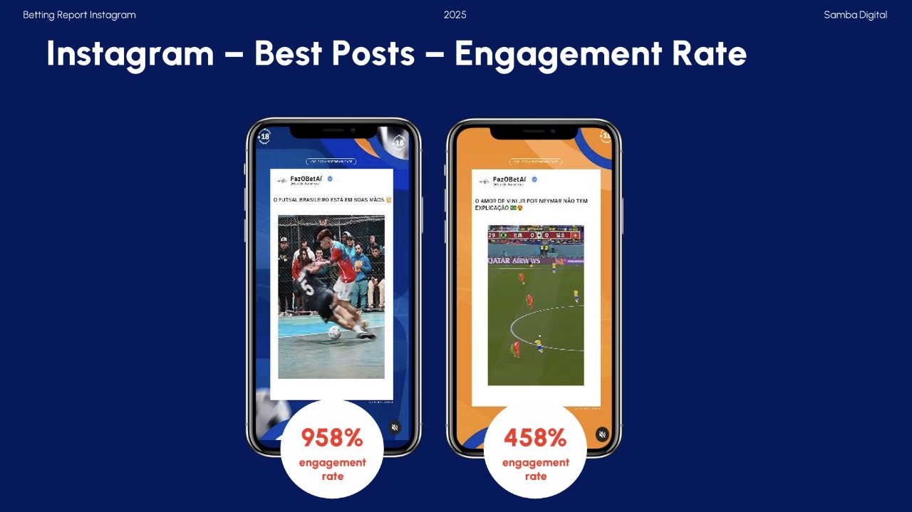 A Blaze, patrocinadora, capitalizou essa oportunidade, e seu post (designado como o melhor do mês) obteve quase dez vezes mais engajamento do que o primeiro post de um concorrente. Nesse caso, a Superbet foi classificada como a quarta maior postagem do mês, com 149.000 interações.