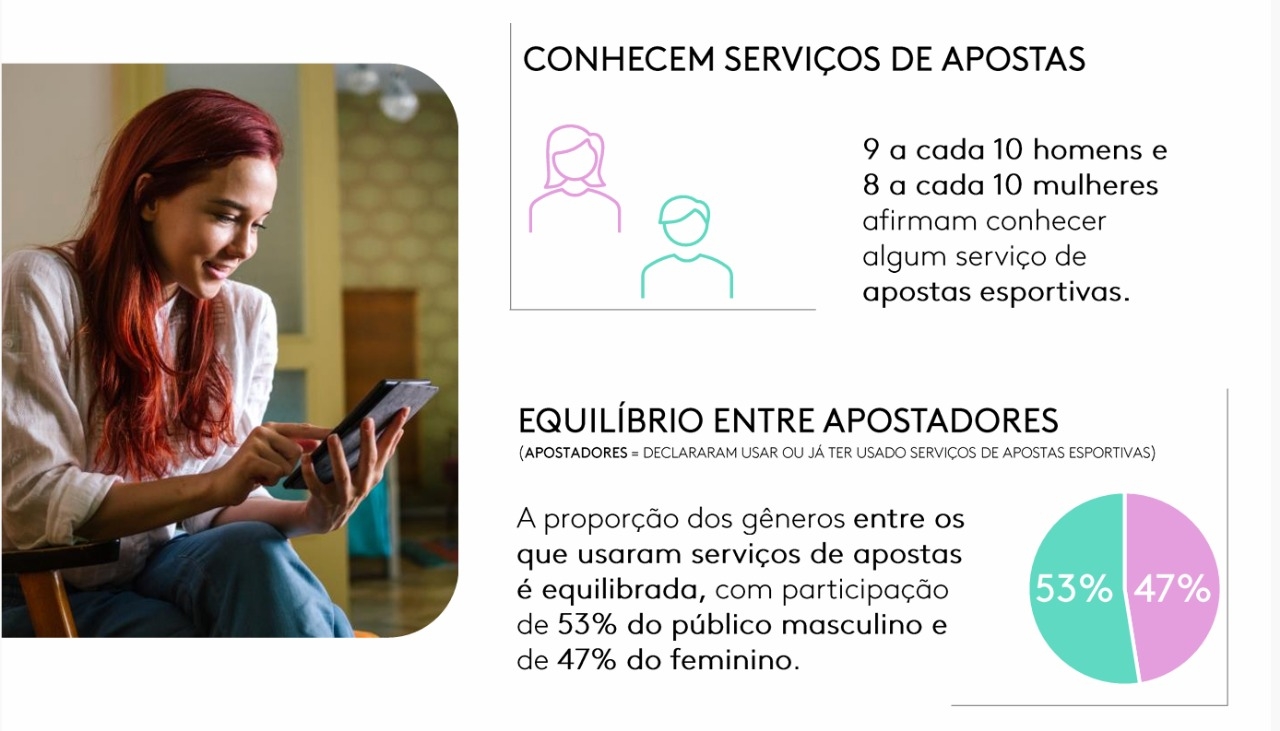 O estudo revela que o conhecimento sobre as apostas esportivas é elevado entre homens e mulheres. Nove em cada dez homens afirmam conhecer alguma plataforma de apostas on-line, enquanto entre as mulheres esse número chega a oito em cada dez.