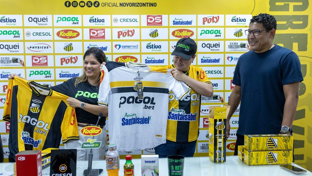 Além de ocupar o espaço mais nobre do Novorizontino, a Pagol também estará em placas de publicidade do estádio Jorge Ismael de Biasi e nas divulgações oficiais nas mídia do clube. O presidente do Novorizontino, Genilson da Rocha Santos, recebeu o CEO do Grupo Lucky Gaming (Pagol.bet), Lincoln dos Santos Pinto, nesta quarta (2), quando anunciou o contrato e apresentou toda a estrutura do Tigre do Vale e falou sobre a parceria.