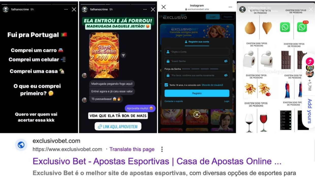 Tomemos o exemplo da Exclusivo Bet, que ilustra a imagem deste texto. A plataforma, que opera fora das exigências da legislação brasileira e sem o domínio .bet.br, circula com tranquilidade no Instagram, no X, aparece em buscas no Google e utiliza criadores de conteúdo no TikTok para atrair novos apostadores. E não estamos falando de banners escondidos.