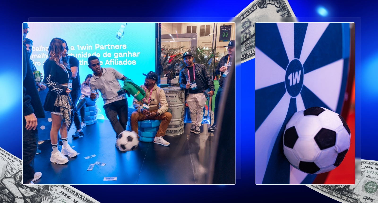 “Em nosso estande, desta vez, todos foram atraídos pelos dardos de futebol e o prêmio era nosso produto. Tudo depende de quão bom jogador de futebol você é e de quantos pontos você marca: para 10, damos uma toalha Big Money, para 20, um uniforme de futebol e, para 30, nossas camisas irreais. Mas você precisa acertar o centro três vezes para chegar lá. A propósito, muitas pessoas conseguiram! Posso te dizer com certeza que os convidados do estande ficaram encantados”, compartilha suas emoções a gerente de marca da 1win Partners, Arina.