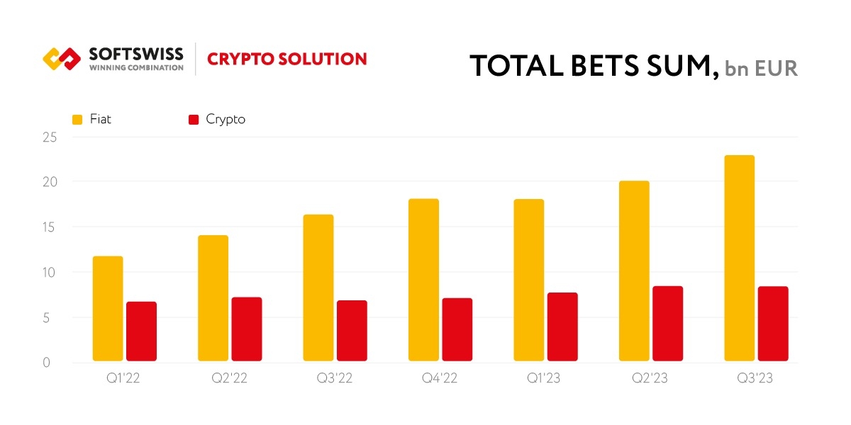 Andrey Starovoitov, co-CEO da SOFTSWISS, comenta: “Um aumento de 18% nas somas de apostas crypto pode parecer muito modesto quando justaposto a uma expansão mais substancial de 45% nas apostas fiduciárias durante os primeiros três trimestres de 2023. Levando em consideração o estado da crypto em outras esferas, como captação de recursos, onde o terceiro trimestre apresentou seus piores resultados desde o final de 2020, a posição das criptomoedas no iGaming pode ser avaliada como comparativamente estável no momento.”