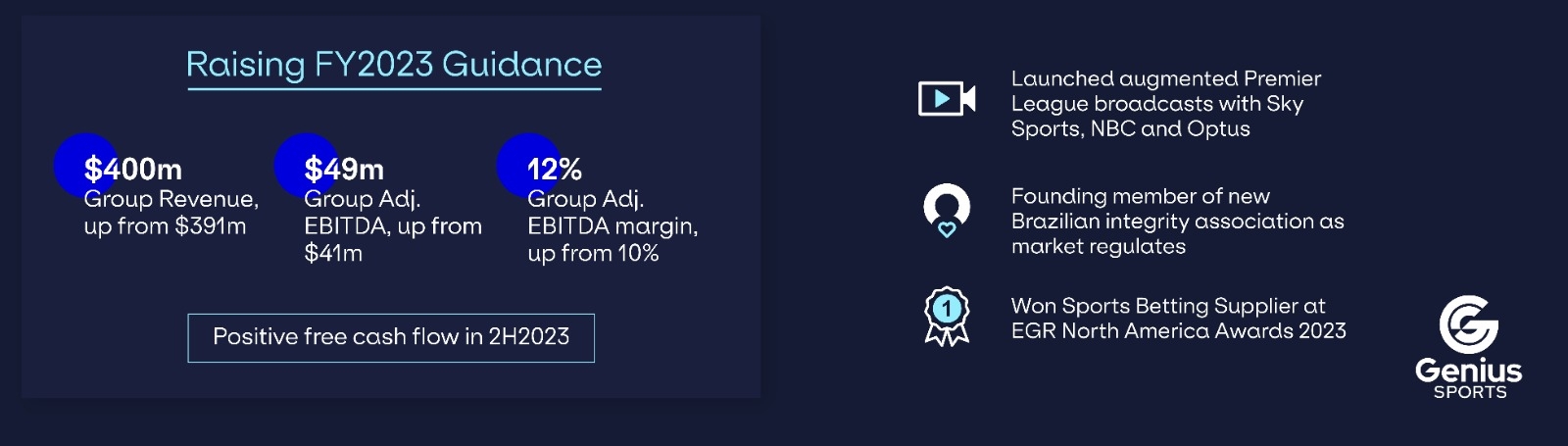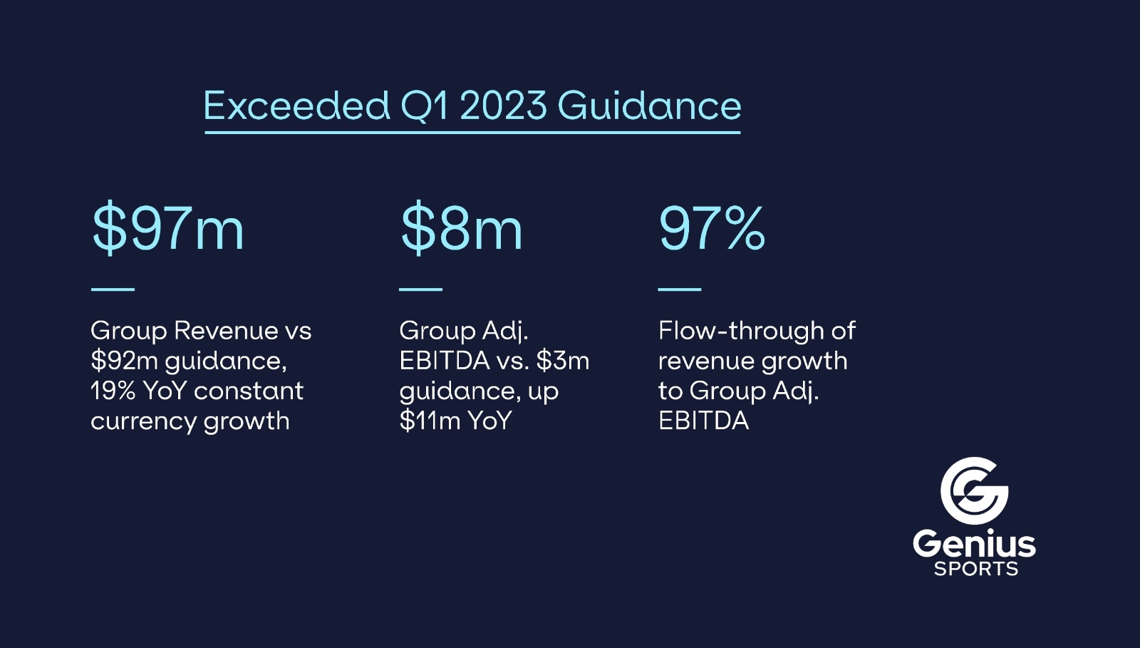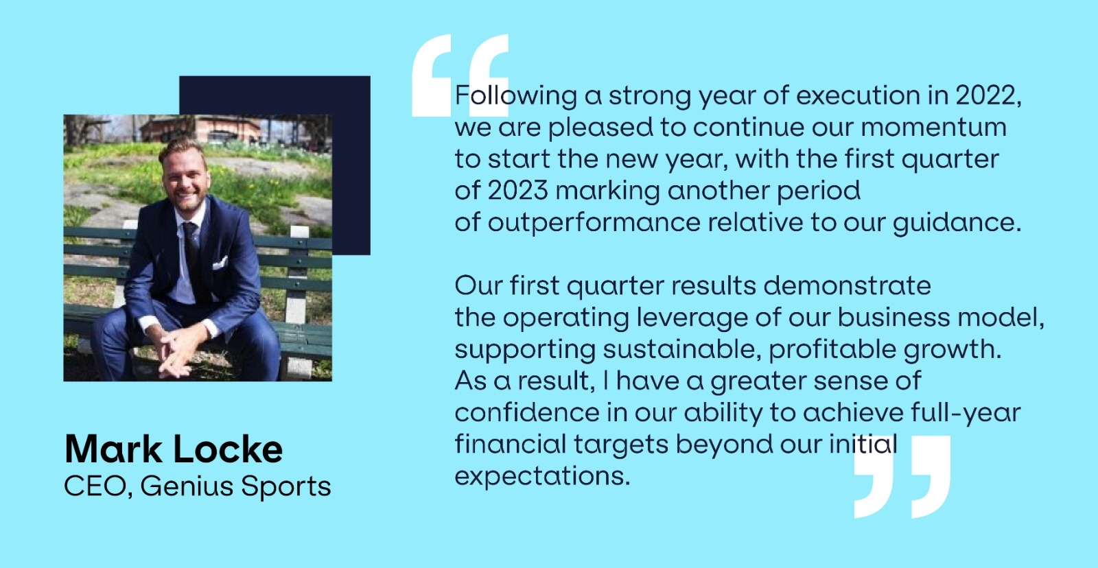 “Após um forte ano de execução em 2022, temos o prazer de continuar nosso impulso para começar o novo ano, com o primeiro trimestre de 2023 marcando outro período de superação em relação à nossa orientação”, disse Mark Locke, cofundador e CEO da Genius Sports.