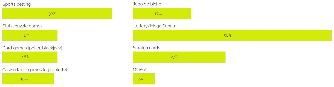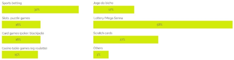 Outro elemento-chave da pesquisa da ENV Media foi construído em torno dos tipos de atividades de jogos de azar em que as pessoas geralmente participavam. Várias respostas eram possíveis, com jogos presenciais e online incluídos.