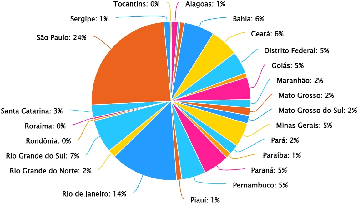 A maior parte dos jogadores em dinheiro real vem do estado de São Paulo – quase um quarto (24%), seguido pelo Rio de Janeiro com 14%. Também vemos uma sólida tração dos jogos nos estados do Rio Grande do Sul (7%), Bahia (6%), Ceará (6%), Paraná, Minas Gerais, Pernambuco, Goiás e Distrito Federal (os últimos cinco com cerca de 5% cada).