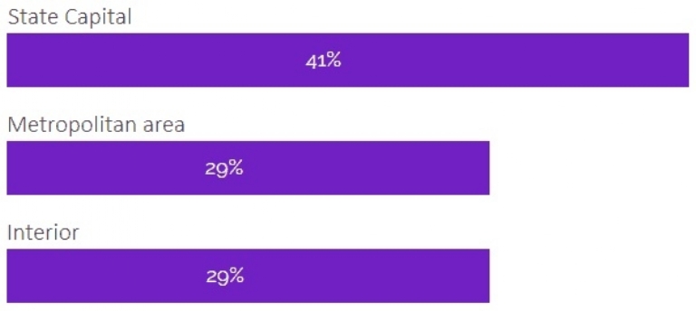 Menos de um terço (29%) reside no campo ou outros territórios “interiores” (ou mais rurais).