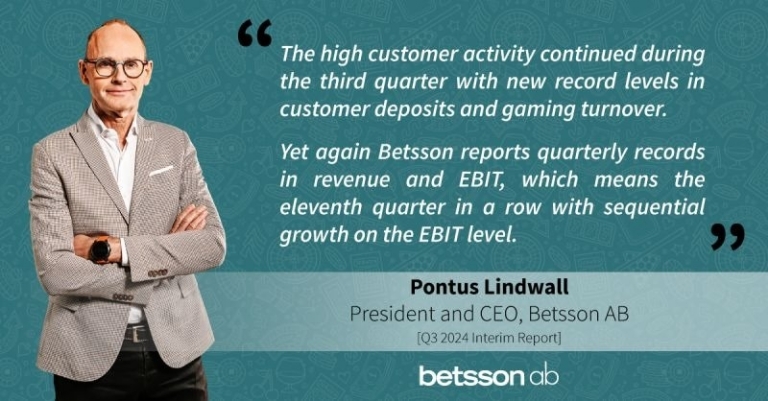 Analisando os resultados do terceiro trimestre, o CEO e presidente da Betsson, Pontus Lindwall, mencionou a alta atividade do cliente como um fator-chave. Ele observa novos níveis recordes em depósitos de clientes e faturamento de jogos durante o trimestre.