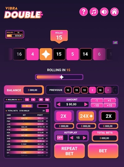 Ramiro Atucha, CEO da Vibra Gaming, disse: “Double é perfeito para jogadores que gostam de viver a vida na via rápida, com números passando rapidamente e rodadas de apostas a cada 15 segundos. Nossa série Quick Games está crescendo rapidamente com Double, Dice e Crash se combinando para produzir um trio de conteúdo de alta qualidade do século 21 para jogadores da próxima geração”.