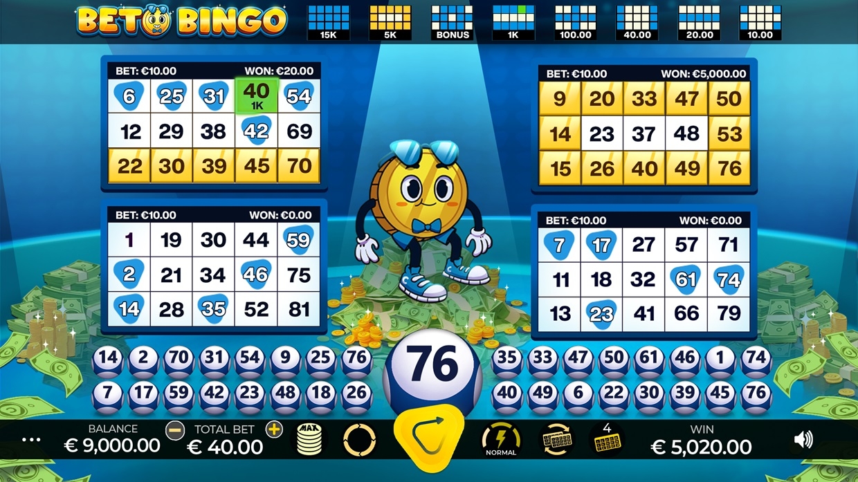 O Beto Bingo! é o primeiro jogo protagonizado pelo carismático mascote, e promete encantar os jogadores com a sua alta volatilidade e um RTP de 95.16%.