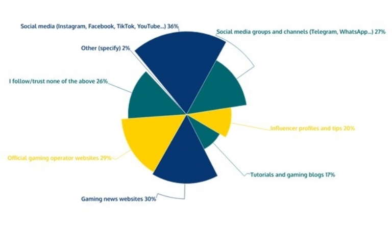O estudo mostra que 63% dos entrevistados recorrem às redes sociais para obter informações sobre jogos de azar, com 20% recorrendo a influenciadores. Esta confiança pode levar à propagação de mitos e equívocos, tais como métodos de manipulação “comprovados”.