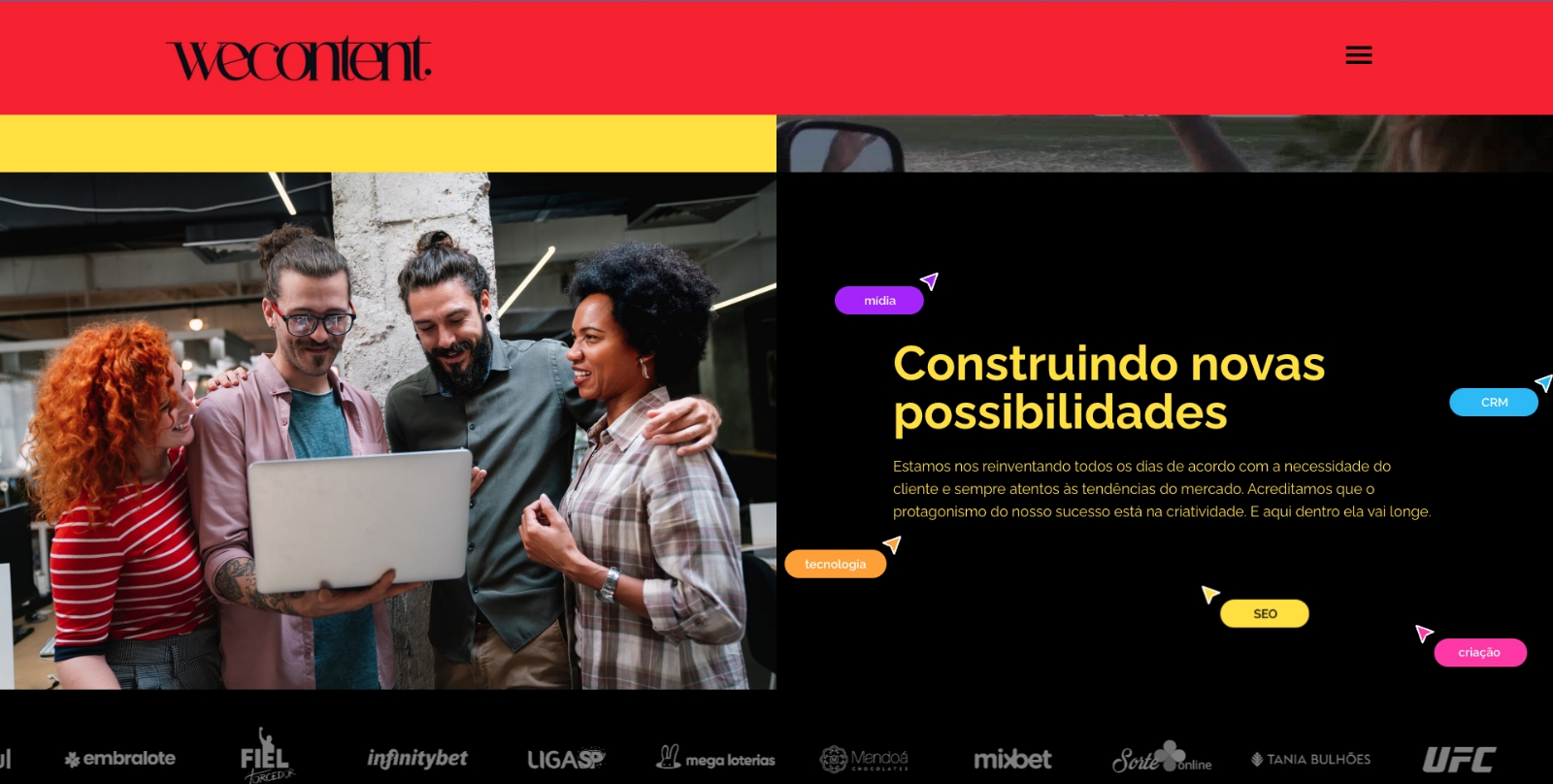 Mais do que mudar o visual, a WeContent encontrou um novo jeito de se posicionar. Aberta ao mercado, a agência foca seus esforços em atender completamente a demanda dos clientes com uma oferta de serviços variados.