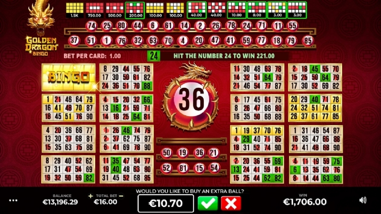 Golden Dragon promete proporcionar aos jogadores uma experiência de jogo imersiva e cativante, transportando-os para um videobingo onde é possível jogar com até 16 cartelas simultaneamente, aumentando significativamente as chances de uma grande vitória.